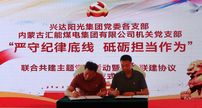興達(dá)陽光集團(tuán)董事長(zhǎng)楊喜林,黨委書記楊寧參加了活動(dòng)并陪同全體黨員參觀了興達(dá)集團(tuán)黨建、企業(yè)展廳,介紹了興達(dá)集團(tuán)的黨建成果和企業(yè)文化。活動(dòng)中,全體黨員重溫了入黨誓詞,觀看了嚴(yán)守紀(jì)律主題教育片,體驗(yàn)了互動(dòng)式主題教育動(dòng)畫。最后,匯能集團(tuán)黨委與興達(dá)陽光黨委簽署了黨支部黨建聯(lián)建協(xié)議書。